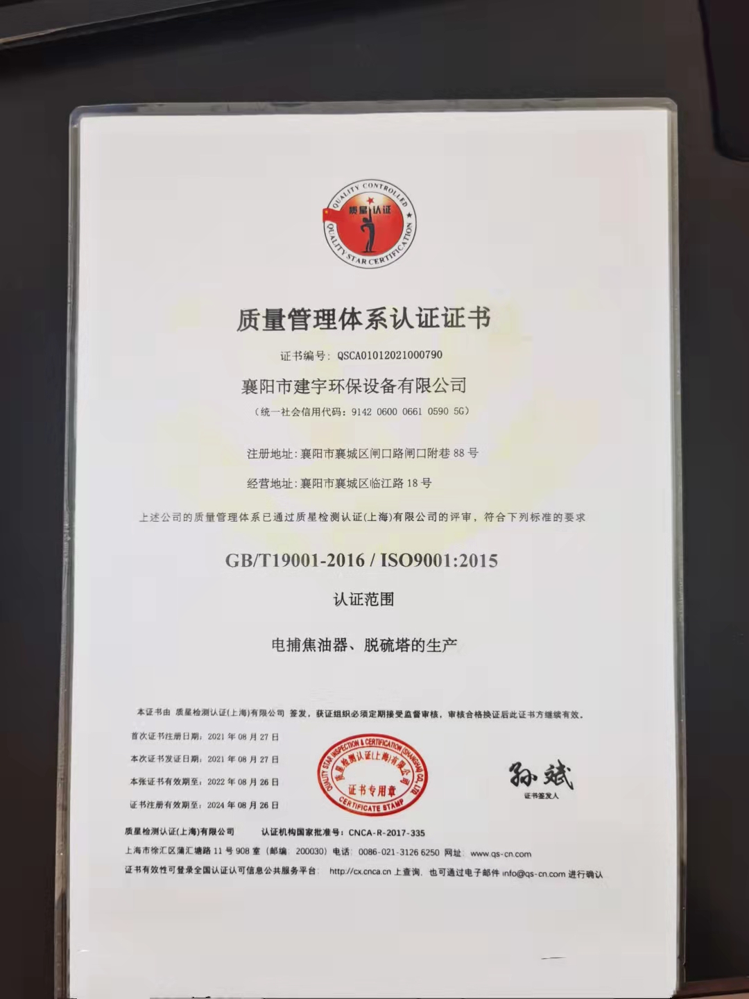 質(zhì)量管理體系認(rèn)證證書(shū)